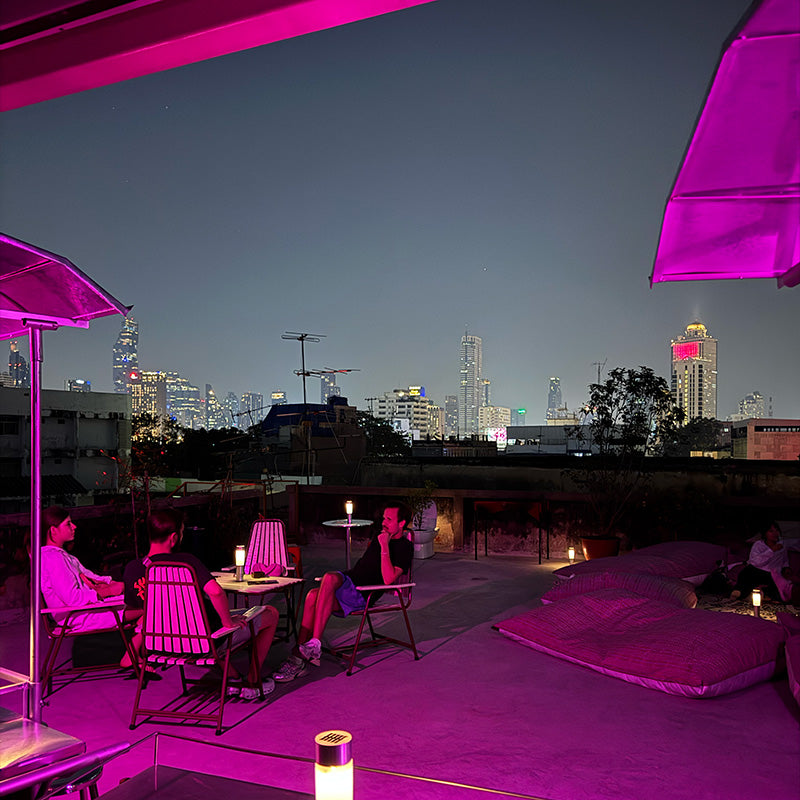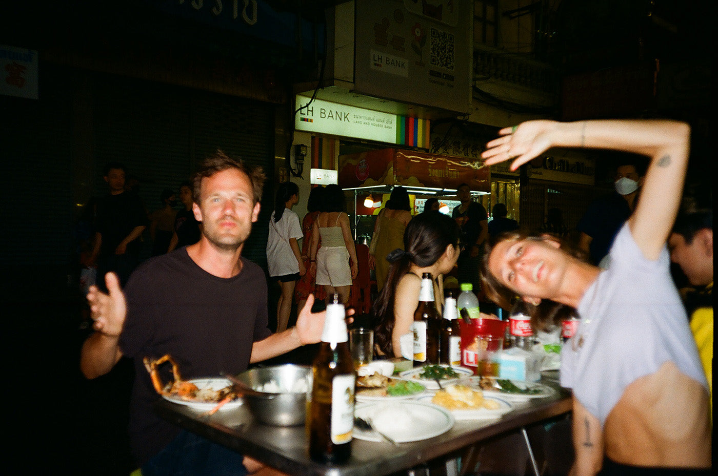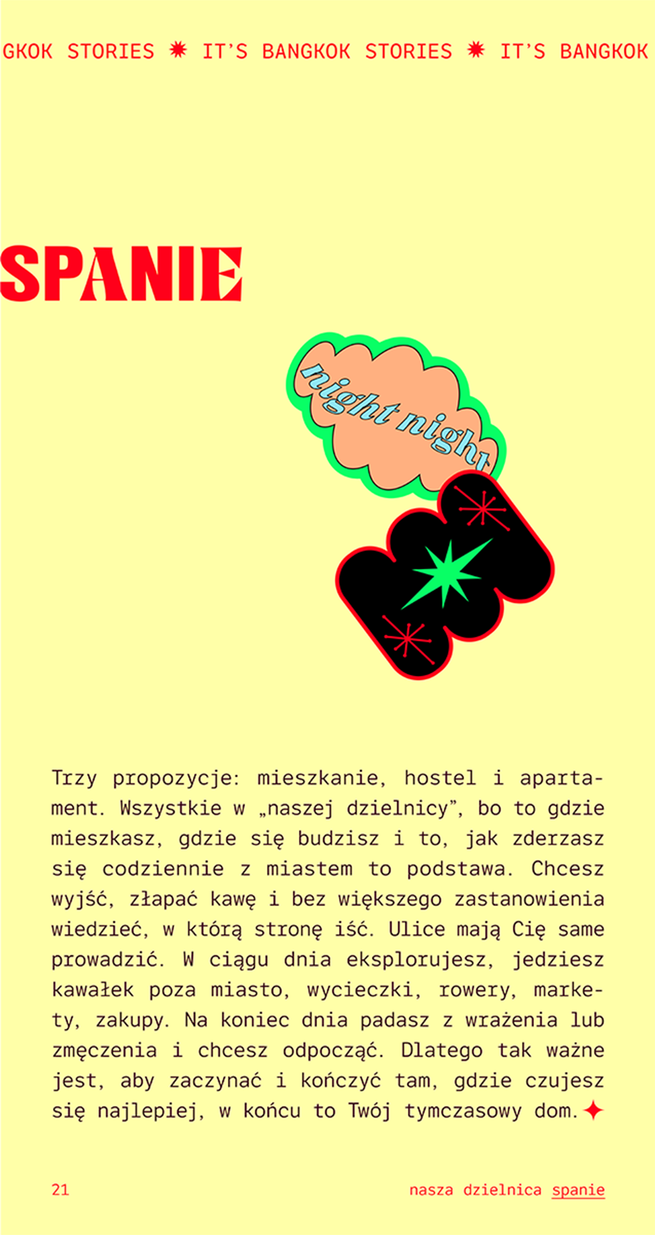 Bangkok uczy dystansu, życia z przymrużonym okiem i umiejętności puszczania oczka. W weekendy chodzimy do tej samej kawiarni – nie dla kofeiny, a dla niekończących się rozmów z Mr. Pumpui, który, tak jak my, kocha Bangkok. Liczymy warany wylegujące się w słońcu pod naszymi oknami. Chodzimy do świątyń tuż przed zamknięciem, po to, żeby w ostatnich minutach zwiedzać je samemu. W drodze do domu łapiemy banana z grilla, popijamy zimnym kokosem i jedziemy dalej. Stoimy w palących żarem korkach, wypacając przy tym wiadra potu. Przesiadujemy w restauracjach, w których czasami trzeba przenieść swój stolik kilka metrów dalej, bo na naszym miejscu chce akurat zaparkować samochód. Pływamy łódką po kanałach, którą dotrzeć można niemalże wszędzie i bez korków. Marzniemy w klimatyzowanych wagonach naziemnych i podziemnych kolejek, obserwując stylówki ludzi z całego świata. Jeździmy nocą po mieście. Jak w grze komputerowej, slalomami i skrótami przecinamy zakorkowane ulice. Dwa poziomy betonowych węży wiją się nad naszymi głowami, jakby chciały przejąć kontrolę nad miastem, a my prujemy dalej przez mosty i ulice na drugi koniec miasta, czasami bez celu, po prostu dla frajdy. Bo życie w Bangkoku to dla nas jedna wielka frajda. Jakbyśmy zeszli z powagi i wieku. Jakbyśmy na nowo byli dzieciakami.